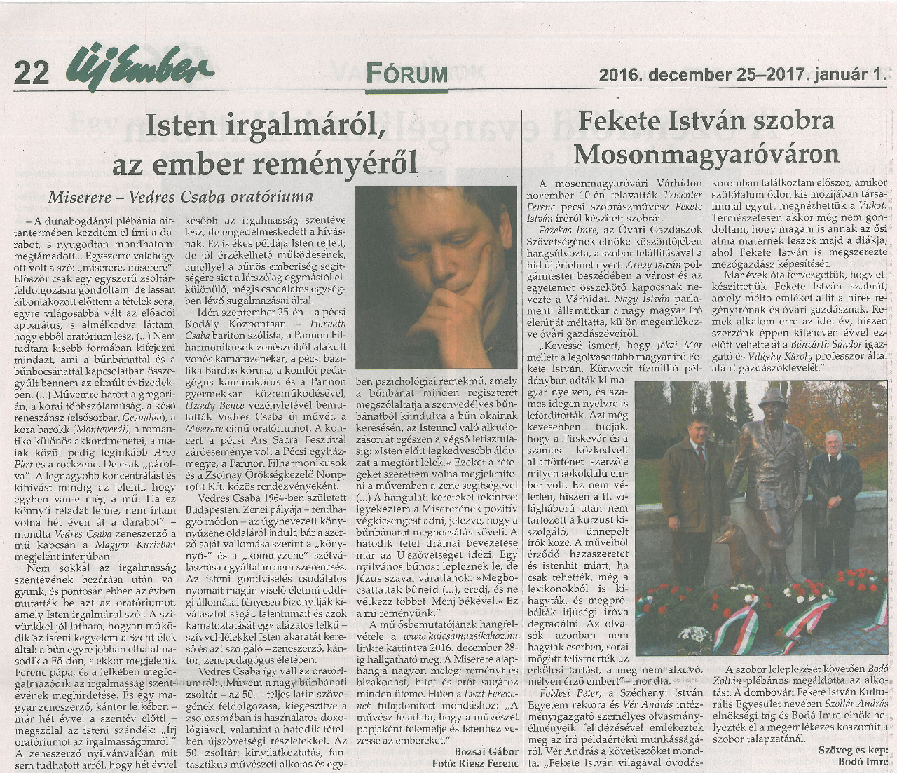 Isten irgalmáról, az ember reményéről. MISERERE - Vedres Csaba oratóriuma. (Új Ember 2016. Karácsony) 2017.03.11 11:13